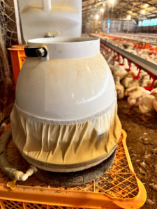 ブロイラー鶏舎内は、細かいノコクズを使用していることが多く、